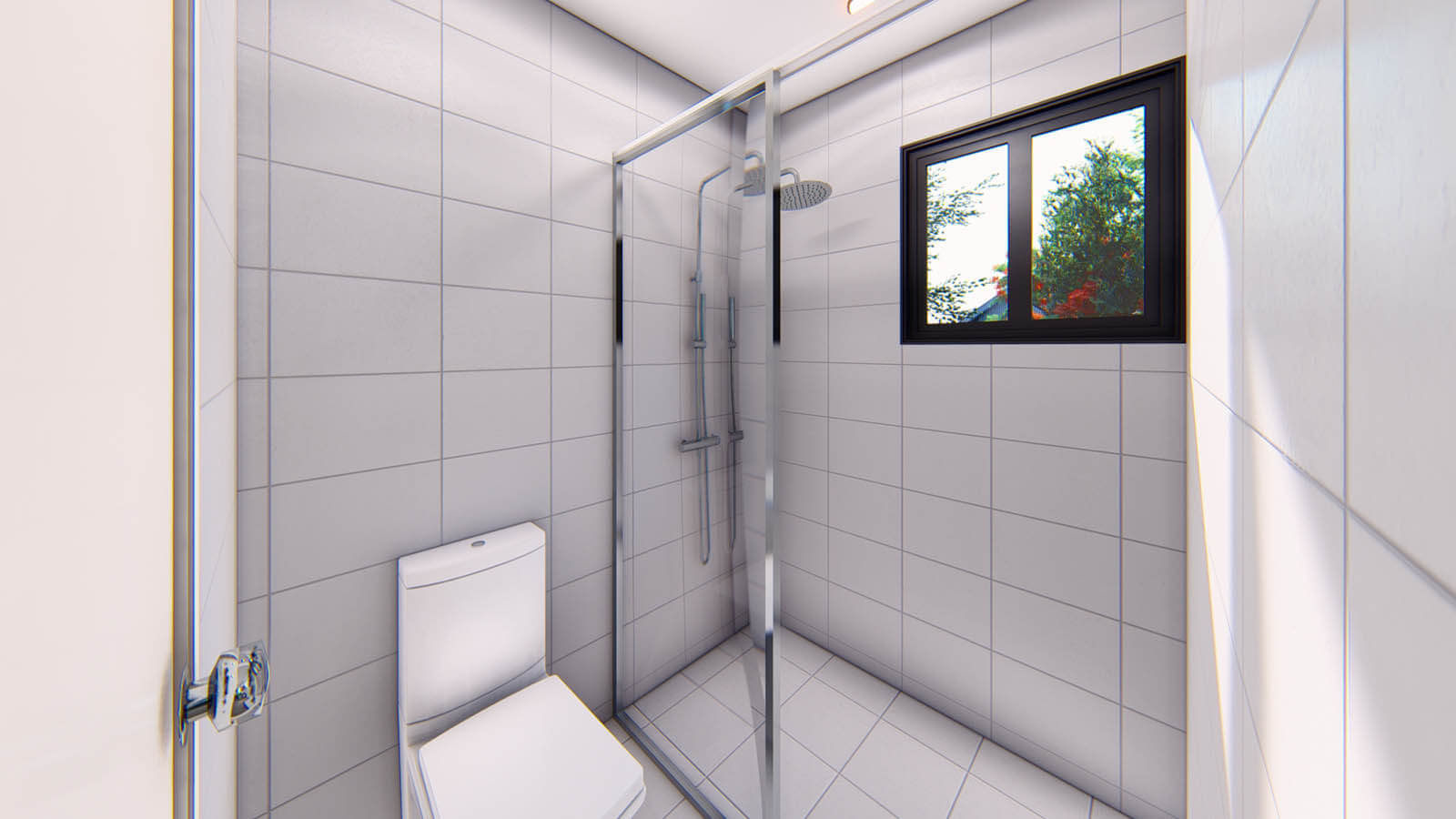 Framed shower screen.