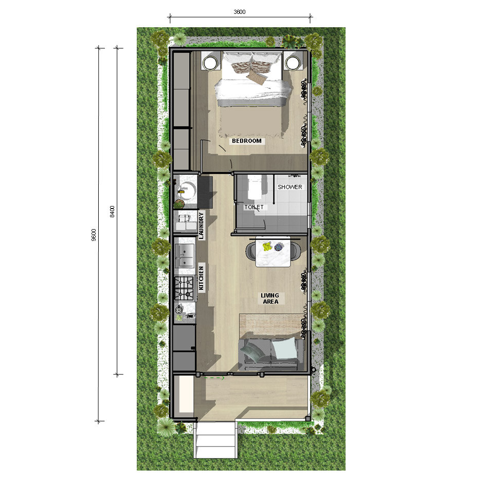 The Alberta is our stunning 30.4m2, 1 Bedroom, 1 Bathroom Granny Flat with a Front Patio, making it a total of 34.7m2. The granny flats at Modern Cottages are made with the highest quality materials, and our passion is to produce sustainable homes which are ready to live in.